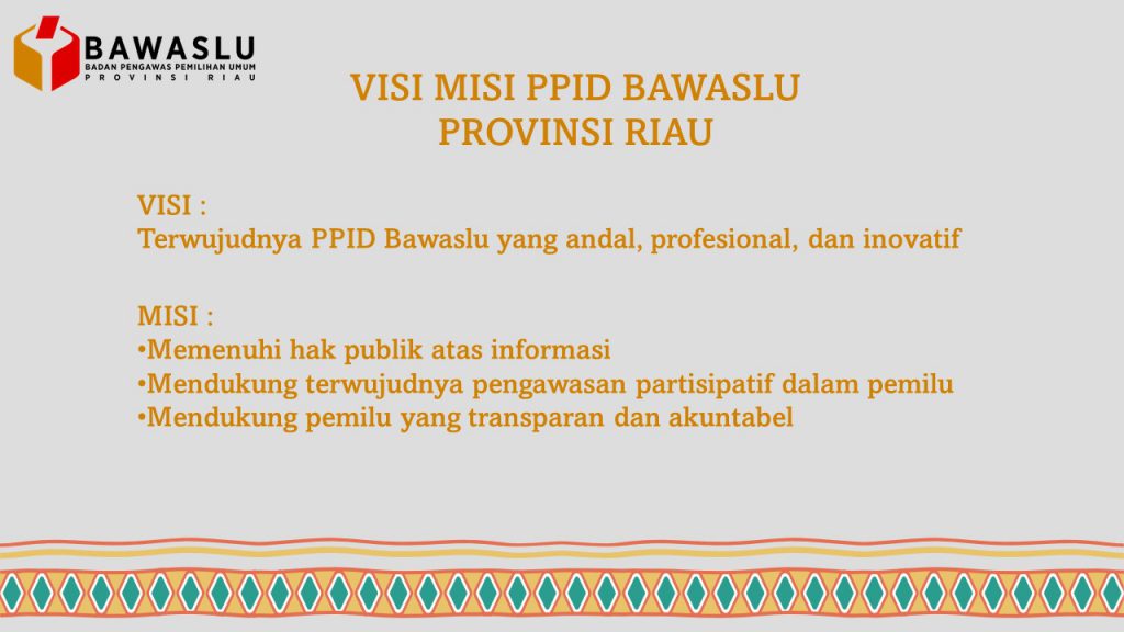 by admin 16 Februari 2022 Visi dan Misi PPID Bawaslu Provinsi Riau Share FacebookTwitterPinterestEmail